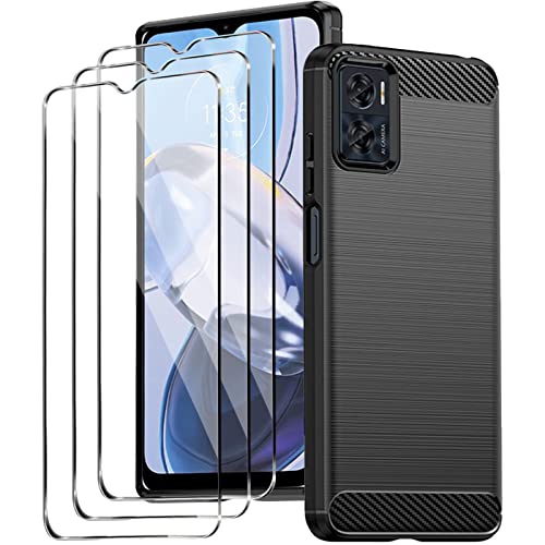 KUSINHOKA Cover per Motorola Moto E22/E22i + [3 Pezzi] Pellicola Vetro Temperato, Morbido Silicone [Antiurto] Custodia Leggero [Anti-Graffio] Bumper Case TPU Protettiva Custodia - Nero