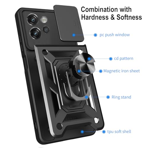 KUSINHOKA Cover per Motorola G32 con Staffa + [3 Pezzi] Pellicola Vetro Temperato, [Protezione Fotocamera Slide] Anti-Graffio Custodia in Silicone e PC, Bumper Case Protettiva Cover, Nero