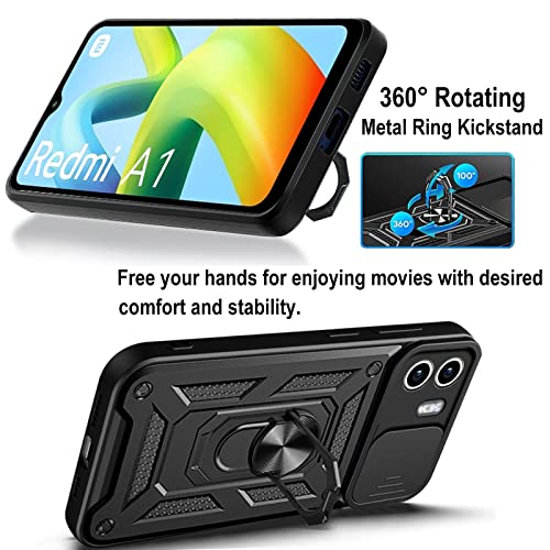 KUSINHOKA Cover per Xiaomi Redmi A1/Redmi A2 con Staffa, [Protezione Fotocamera Slide] Anti-Graffio Custodia in Silicone e PC, Bumper Case Protettiva Cover, Nero