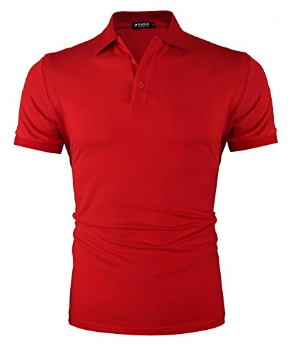 Kuson Polo Uomo Basic Manica Corta Tennis Golf T-Shirt Monocromo, Design Casual Gentiluomo Poloshirt Cotone - Rosso 3XL