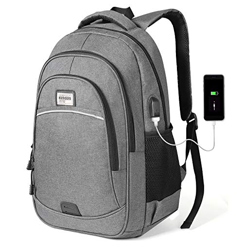 KUSOOFA Zaino Uomo, Zaino per PC con Porta USB, Zaino Scuola Uomo 15.6 Pollici per Università Business Viaggio 35L (BR4-Gray)