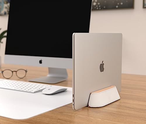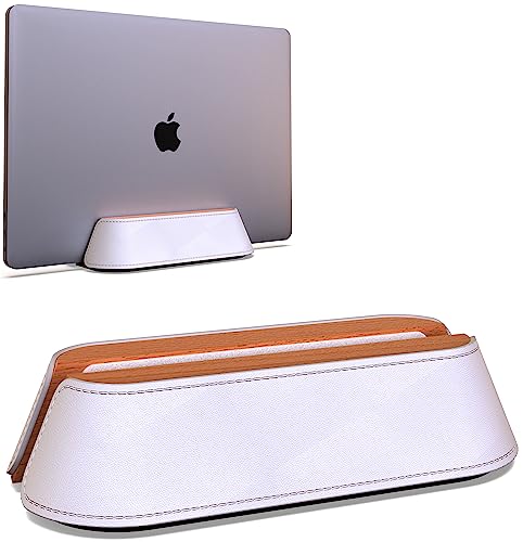 KUSOVILI Supporto verticale per computer portatile, supporto verticale regolabile per computer portatile, in legno naturale e pelle, per Apple MacBook Pro, Surface, Lenovo, Dell e altri (da 0,4 '' a