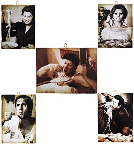 KUSTOM ART Set di 5 Quadretti Stile Vintage Attori Famosi - Fantozzi/Celentano/Sofia Loren/Totò/Sofia Loren(Pizza) - Stampa su Legno per Arredamento Ristorante Pizzeria Trattoria Bar Albergo Locanda