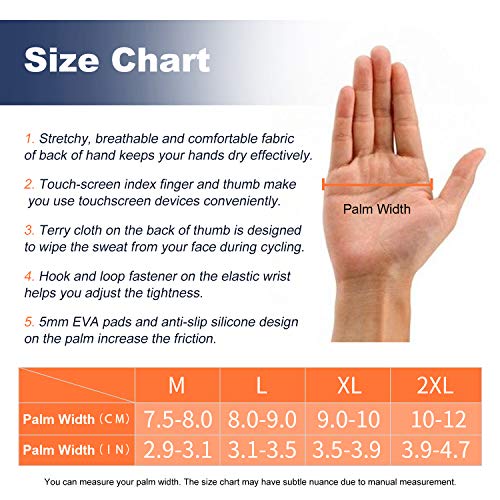 【ANTIURTO&MATERIALE OTTIMO】Materiale: 28% Lycra, 24% Nylon,12% Neoprene,36% Synthetic Leather. Perfetta vestibilità grazie ai materiali elastici del dorso. Con imbottitura in gel che protegge le mani dalle vibrazioni del manubrio e riduce l'intorpidimento. Perfetti per i giri in bici di lunga durata.