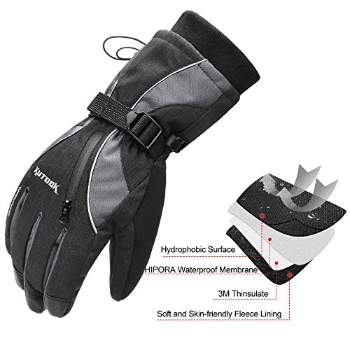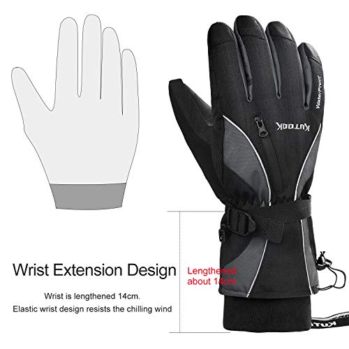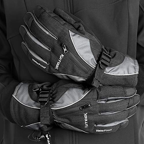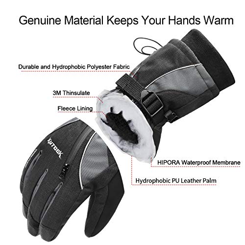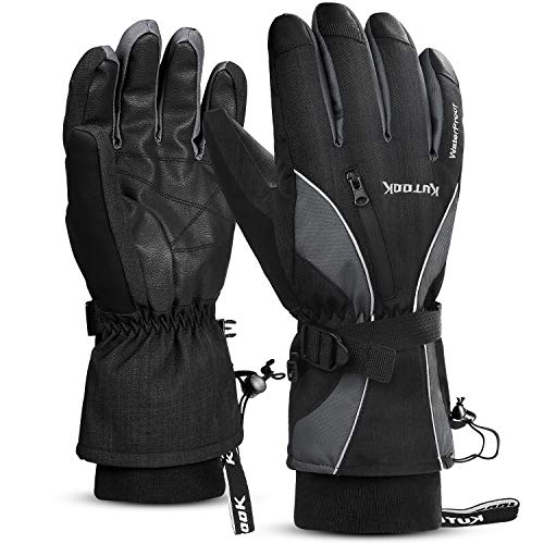 KUTOOK Guanti da Sci Impermeabile Antivento Termico Invernale da Uomo Traspirante Sportivo pettinaggio Outdoor Neve(Grigio&S)