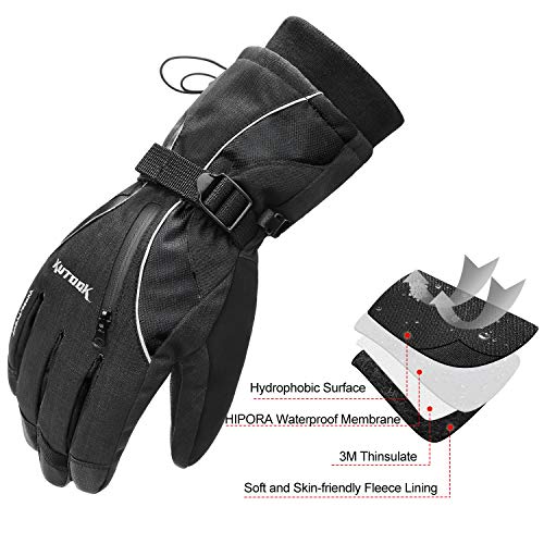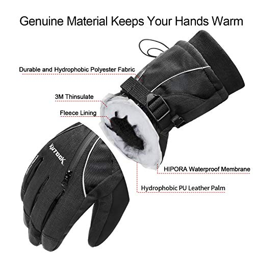 KUTOOK Guanti da Sci Impermeabile Antivento Termico Invernale da Uomo Traspirante Sportivo pettinaggio Outdoor Neve(Nero&M)