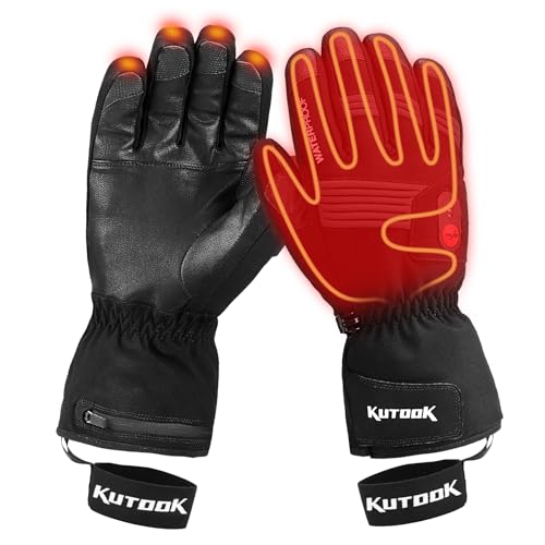 KUTOOK Guanti Riscaldati Invernali Antivento Impermeabile Touchscreen con Batteria Ricaricabile per Moto Snowboard e Sci e Ciclismo Sport Invernali (XL)