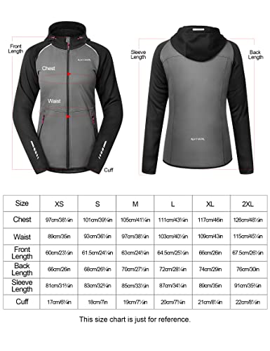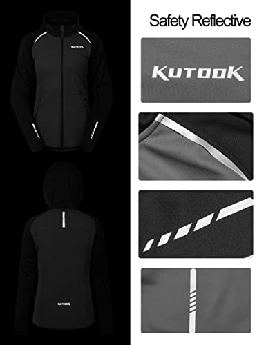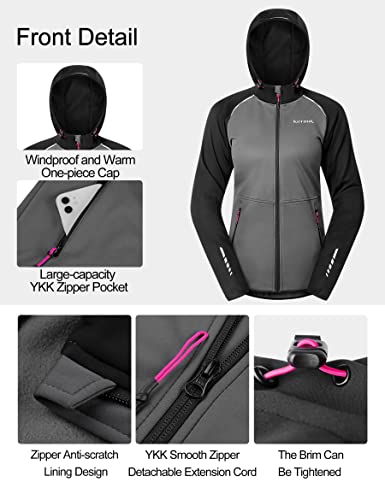 KUTOOK softshell giacca invernale a vento con cappuccio giacca da corsa caldo antivento impermeabile 2 tasche per le donne sport all'aperto vita quotidiana,XXL