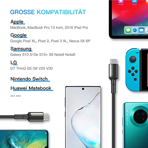 Compatibilità universale: questo cavo da USB C a USB C è adatto per Google Pixel XL/2/2XL/3/3XL/3a/3a XL, SamSung Galaxy S10/S10+/S10e, iPad Pro 2018, Nexus 6P, MacBook 2016/2017, MacBook Air 2018, MacBook Pro 13,3", Huawei P20/P;