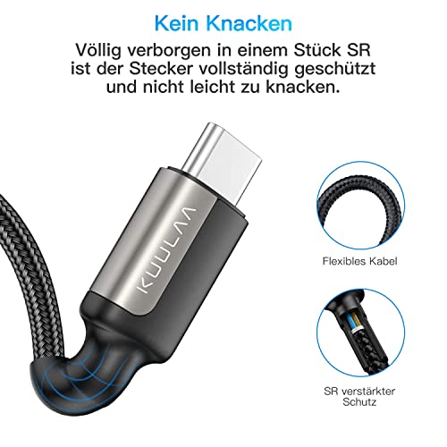 60 W PD Power Delivery: il cavo Kuulaa 2022 in lega di alluminio di ultima generazione USB C a USB C supporta la ricarica rapida da 60 W, supporta anche altri protocolli di ricarica rapida come QC3.0, QC2.0, Huawei FCP. La velocità di ricarica è molto più veloce rispetto ai cavi normali.