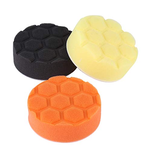 Kuuleyn Tampone per lucidatura, 3X Kit tampone Cerato per lucidatura in Spugna per lucidatrice per Auto Arancione Nero Giallo(5inch(125mm))