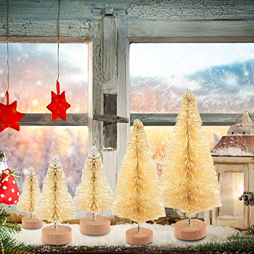 Gli alberi di sisal sono montati su una base di legno, lo fanno stare in piedi facilmente, creano la tua mini scena del villaggio invernale di Natale
