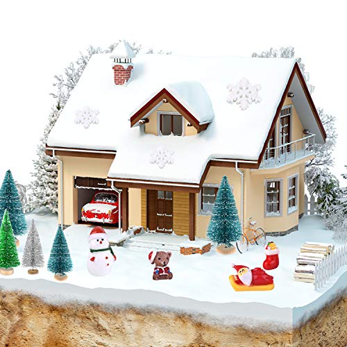 8 * alberi di spazzole per bottiglie, 42 * mini ornamenti natalizi: Babbo Natale, scatole regalo di Natale, stella di Natale, luna di Natale, campana di Natale, fiocchi di neve, cervo di Natale, calzini di Natale, casa del villaggio di neve, orso di Natale, bastoncino di zucchero, alberi di Natale in resina, ecc. Mestiere dell'ornamento del paesaggio del giardino delle fate