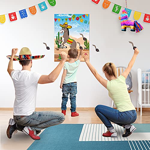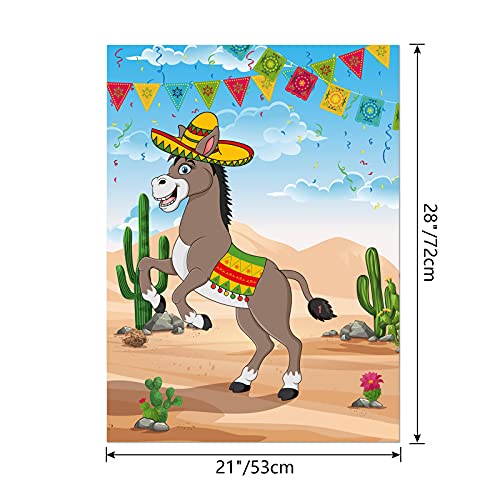 KUUQA Pin the Tail on the Donkey Party Game, Forniture per feste di asino messicano, Decorazioni per feste di compleanno, Decorazioni per feste Fiesta messicana