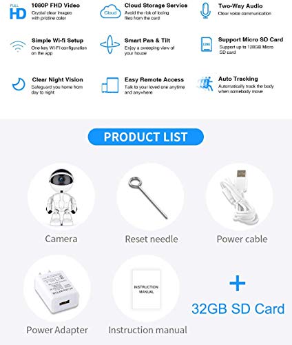 Audio bidirezionale chiaro: la telecamera IP del robot di sorveglianza offre un audio bidirezionale in tempo reale. La fotocamera è costruita con microfono e altoparlante. Quindi puoi parlare con i tuoi figli tramite il tuo smartphone da remoto ogni volta che vuoi