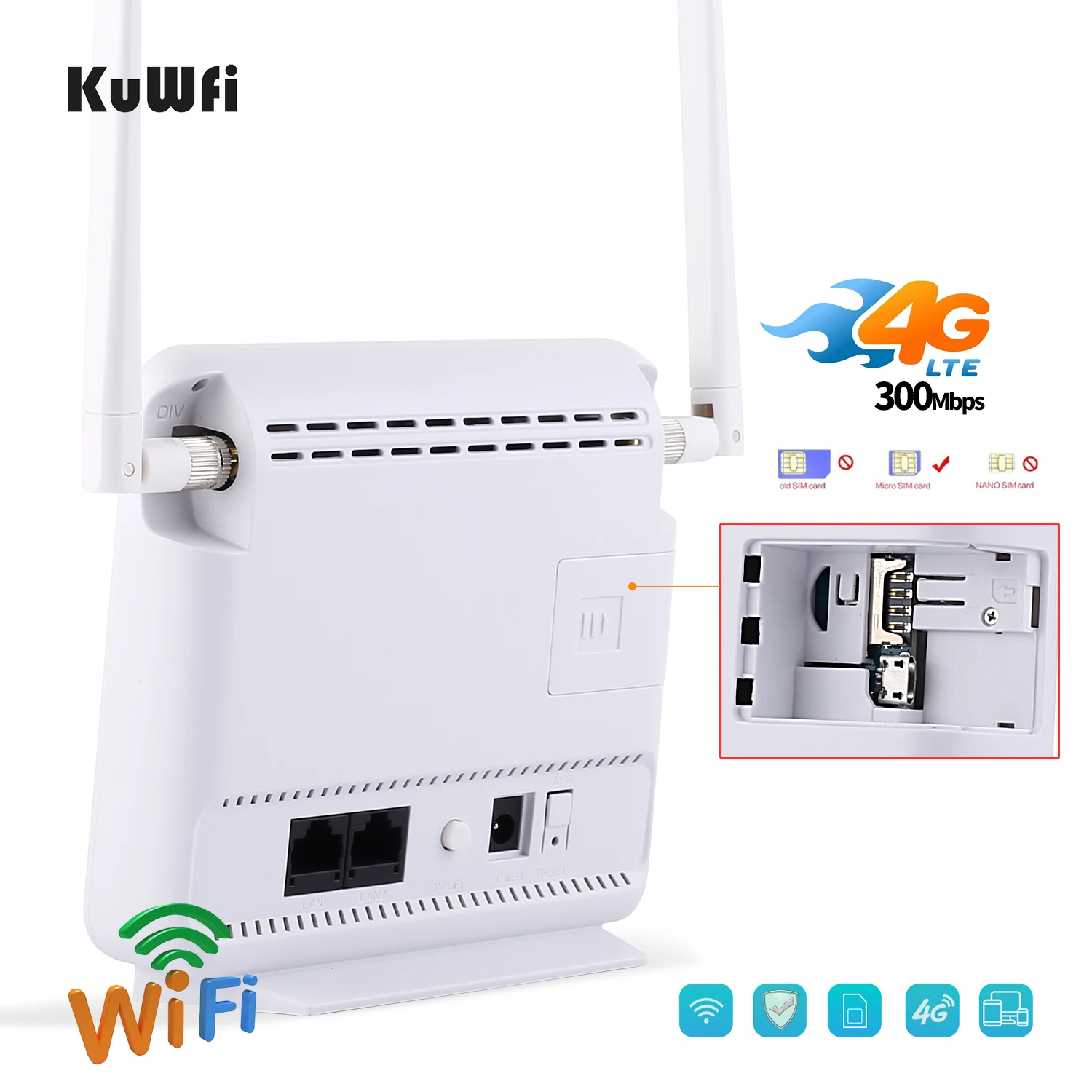 KuWFi Unlocked 300Mbps Wifi Routers 4G LTE CPE Mobile Router,Two LAN Port Support SIM card and Europe/Asia/Middle East/Africa