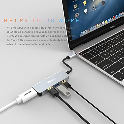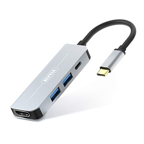 Kuyia Hub in alluminio ingresso tipo C con uscita 4K HDMI,2 porte USB 3.0 e 1 tipo c thunderbolt