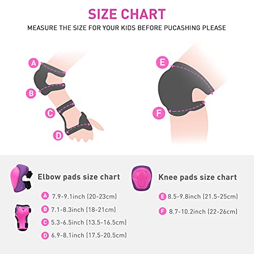 Kuyou - Set di ginocchiere per bambini, 6 in 1, con protezioni per polso regolabili, protezione per bambini e bambini, per roller e bici BMX (rosa)