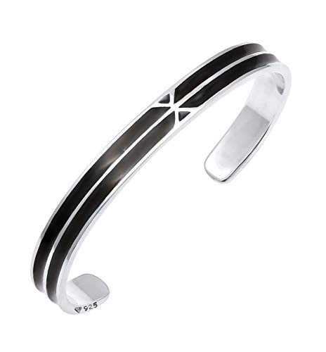 Kuzzoi Buddha Bracciale da uomo in argento sterling 925 massiccio, aperto, con finitura smaltata nera, 7 mm di larghezza, 19 g di peso, 19 cm, Argento
