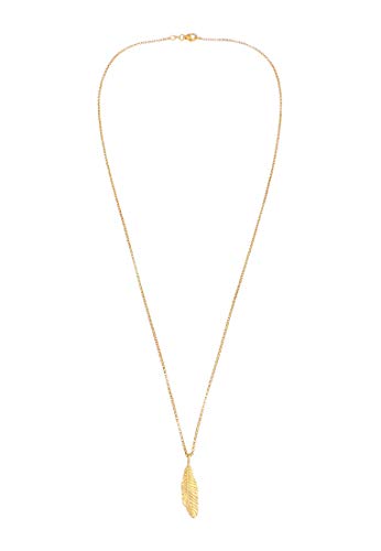 Kuzzoi Collana da Uomo con Semplice Ciondolo a Forma di Piuma (30 mm) in Argento Sterling 925 Placcato Oro, Collana da Uomo in Stile Boho, Collana con Ciondolo per Uomo