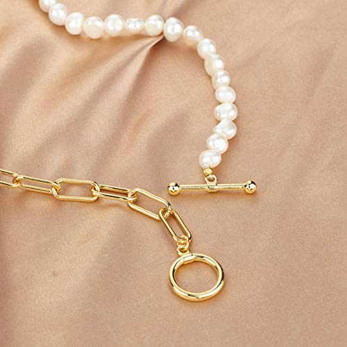 KVLmoze Collana girocollo con perle a graffetta Collana con ciondolo in oro 18k placcato oro 10mm Collana vintage con perle coltivate raccolte a mano per donne e ragazze