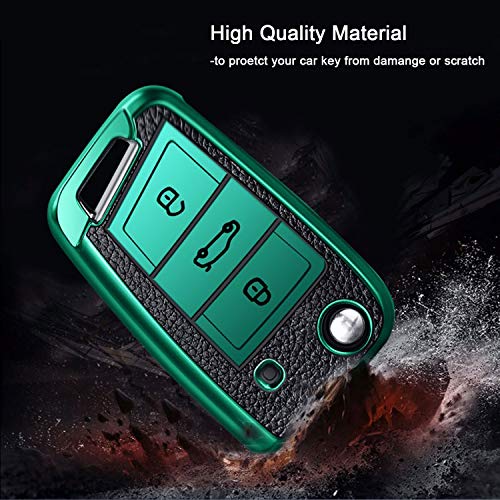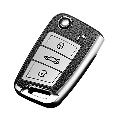 Kwak's Caso Chiave in TPU Compatibile per VW Volkswagen Golf 7 Beetle Touran Tiguan SEAT Leon SKODA Octavia a 3 PulsantI Pieghevole Chiave Morbido Cover Chiave per Auto con Portachiavi(argento aurora)