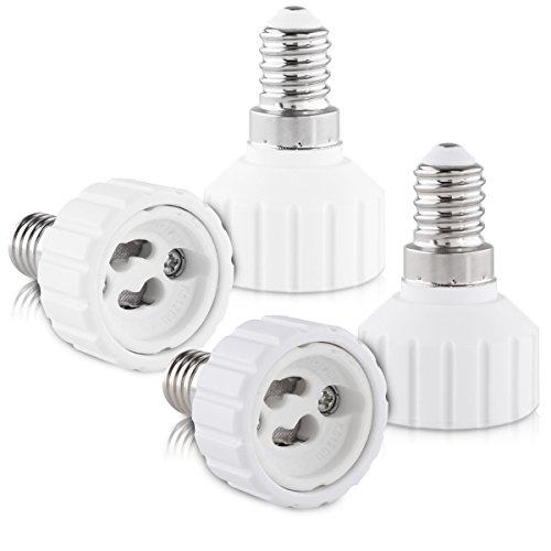 CONFEZIONE DA 4 PEZZI: grazie ai 4 adattatori per lampadina si possono utilizzare più portalampade E14 con una lampadina GU 10. Gli adapter possono essere utilizzati sia per lampade da tavolo che a stelo.