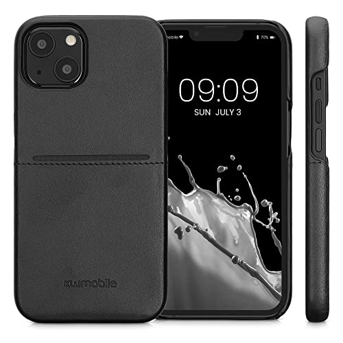 Kwmobile Back Cover Compatibile con Apple iPhone 13 - Custodia Rigida in Simil Pelle con Slot Porta Carte - Copertina in Similpelle con Portacarte