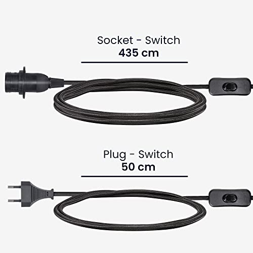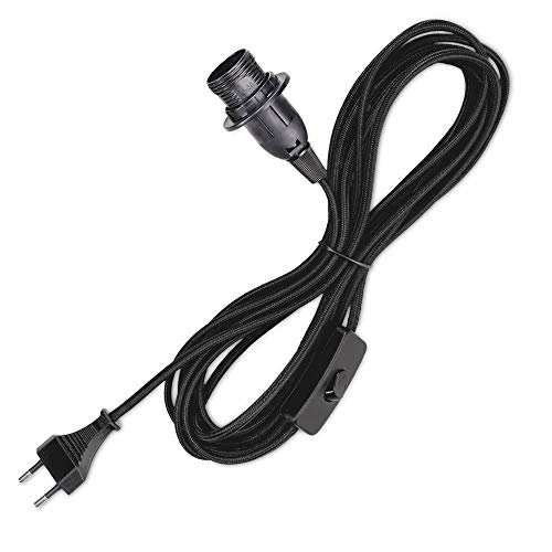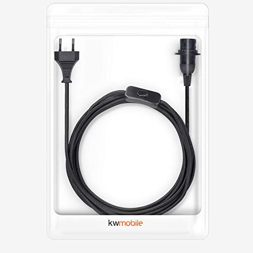 Kwmobile Cavo Porta-Lampada con Interruttore - Filo Porta-lampade a Sospensione - Attacco Lampadina E14 - Corda Lunga 5m Rivestita in Tessuto Nero