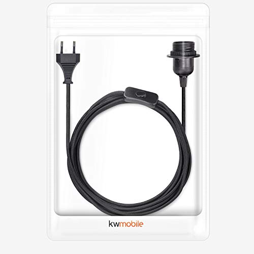 Kwmobile Cavo Porta-Lampada con Interruttore - Filo Porta-lampade a Sospensione - Attacco Lampadina E27 - Corda Lunga 5m Rivestita in Tessuto Nero