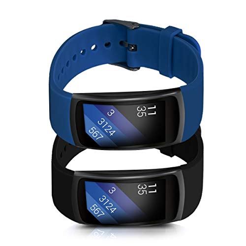 Kwmobile 2X Cinturino TPU Silicone Fibbia Compatibile con Samsung Gear Fit2 / Gear Fit 2 PRO Cinturino - Cinturini 13-20 cm Blu Scuro/Nero