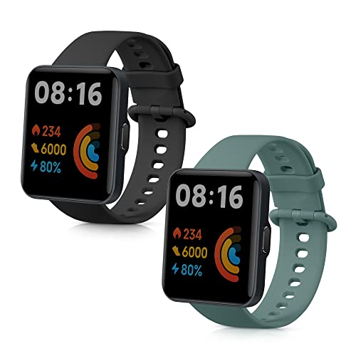 Kwmobile 2x Cinturino TPU Silicone Fibbia Compatibile con Xiaomi Redmi Watch 2 Lite Cinturino - Cinturini 14-22 cm nero/verde scuro