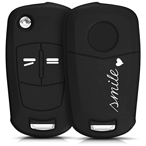 Kwmobile Coprichiave Compatibile con Opel Vauxhall con 2 tasti pieghevole - Chiave Auto Protezione Cover Telecomando - Smile bianco/nero