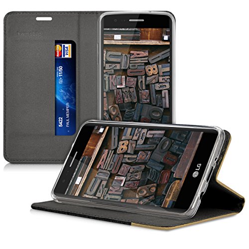 Kwmobile Cover Compatibile con LG K8 (2017) - Custodia Flip a Libro in Pelle PU e Tessuto - Stand Case Protettiva con Supporto