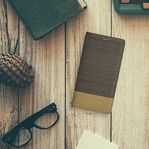 IL TESSUTO INCONTRA LA PELLE: la cover a libro in antracite / marrone è realizzata in tessuto effetto lino ed è arricchita da un elegante inserto in similpelle. Protegge il tuo cellulare da graffi e polvere.