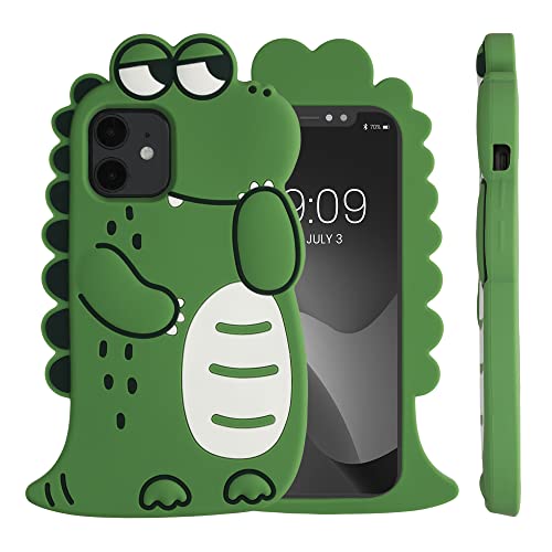 Kwmobile Cover compatibile con Apple iPhone 12 / iPhone 12 Pro - Custodia Cover in silicone TPU - Copertina protettiva Back Case Backcover - Dinosauro Carino nero/bianco/verde