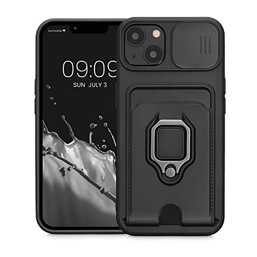 Kwmobile Cover Compatibile con Apple iPhone 13 / iPhone 14 - Custodia Magnetica con Protezione Fotocamera Scorrevole Anello Porta Carte nero