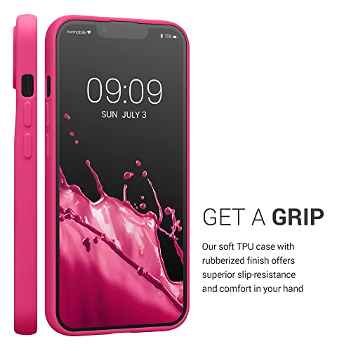 Kwmobile Cover compatibile con Apple iPhone 13 - in Silicone morbido - Custodia con scomparto porta carte biglietti - Back Case rosa shocking matt