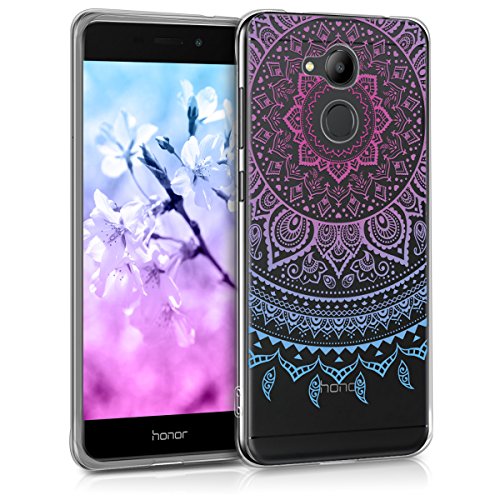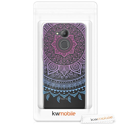 Kwmobile Cover Compatibile con Huawei Honor 6C PRO - Custodia in Silicone TPU - Backcover Protettiva Cellulare Sole Indiano Blu/Fucsia/Trasparente