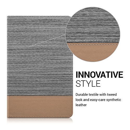 Tela e finta pelle: Adotta un look unico con questa custodia in grigio chiaro-marrone dal design che unisce tessuto e finta pelle;