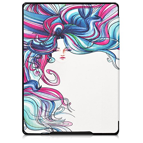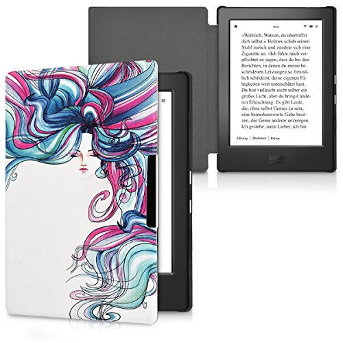 Kwmobile Cover Compatibile con Kobo Aura H2O Edition 1 - Custodia in Pelle PU - Flip Case per eReader - Rainbow Girl Blu/Fucsia/Bianco