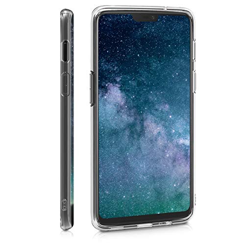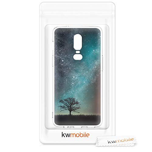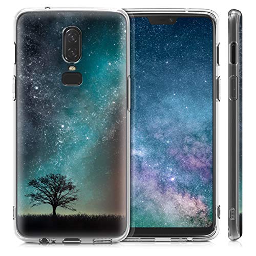 Kwmobile Cover Compatibile con OnePlus 6 - Stampa UV in TPU Bordo Trasparente - Custodia Protettiva - Natura e Spazio Blu/Grigio/Nero