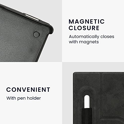 Kwmobile Cover Compatibile con Pocketbook INKPad Lite - Custodia Tavoletta Grafica Simil Pelle Nabuk con Porta Penna Nero - 360°