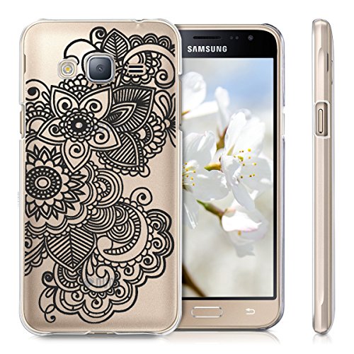 Kwmobile Cover compatibile con Samsung Galaxy J3 (2016) DUOS - Custodia rigida trasparente per cellulare - Back Case cristallo in plastica - nero / trasparente
