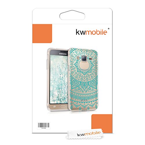 Kwmobile Cover Compatibile con Samsung Galaxy J3 (2016) DUOS - Custodia in Silicone TPU - Backcover Protettiva Cellulare Sole Indiano Menta/Trasparente