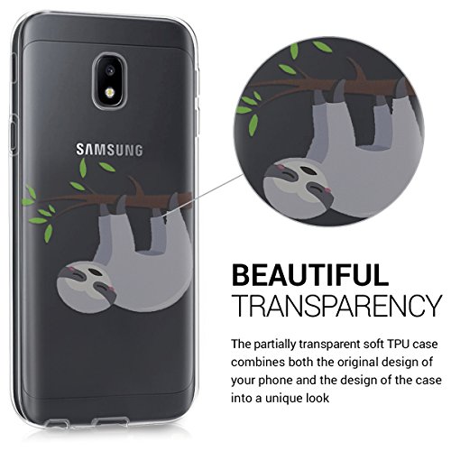 Kwmobile Cover compatibile con Samsung Galaxy J3 (2017) DUOS - Custodia in silicone TPU - Backcover protettiva cellulare Bradipo grigio / marrone / trasparente