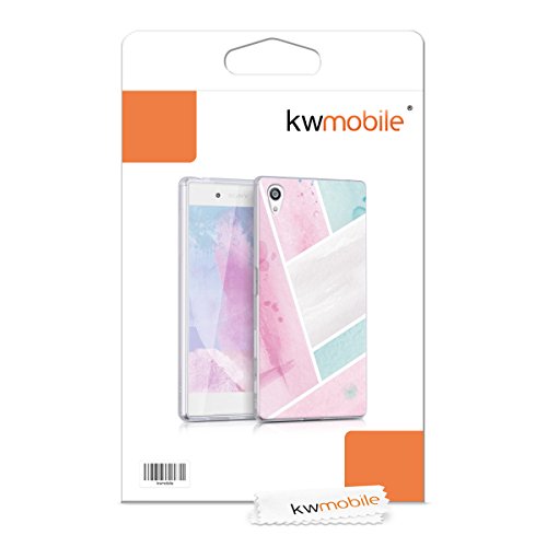 Kwmobile Cover compatibile con Sony Xperia Z5 - Back Case Custodia in silicone TPU trasparente Acquarello rosa/menta/bianco