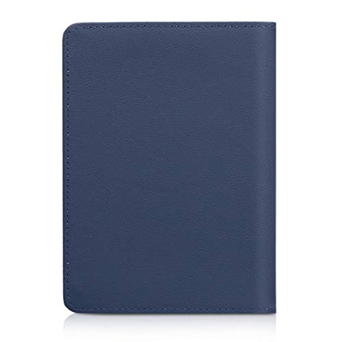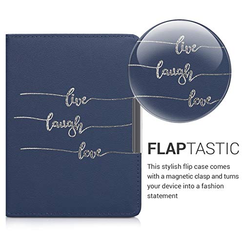 Kwmobile Cover compatibile con Tolino Vision 1/2 / 3/4 HD - Custodia in pelle PU - Flip Case per eReader - Live Laugh Love argento/blu scuro