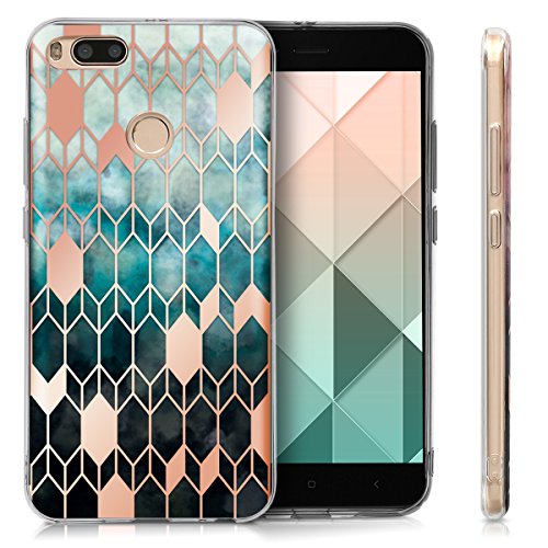 Kwmobile Cover compatibile con Xiaomi Mi 5X / Mi A1 - Back Case Custodia in silicone TPU trasparente blu / oro rosa