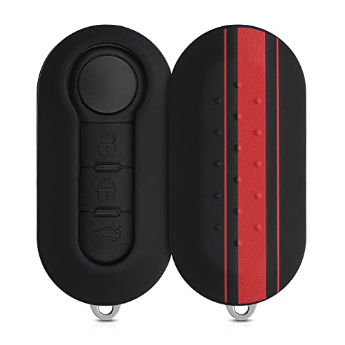 Kwmobile Cover copri-chiave compatibile con Fiat Lancia con 3 tasti pieghevole - Guscio protettivo chiavi auto - copertina in plastica rigida - Strisce Rally rosso/nero